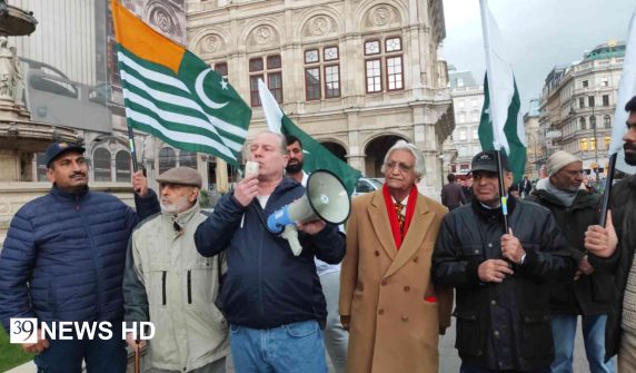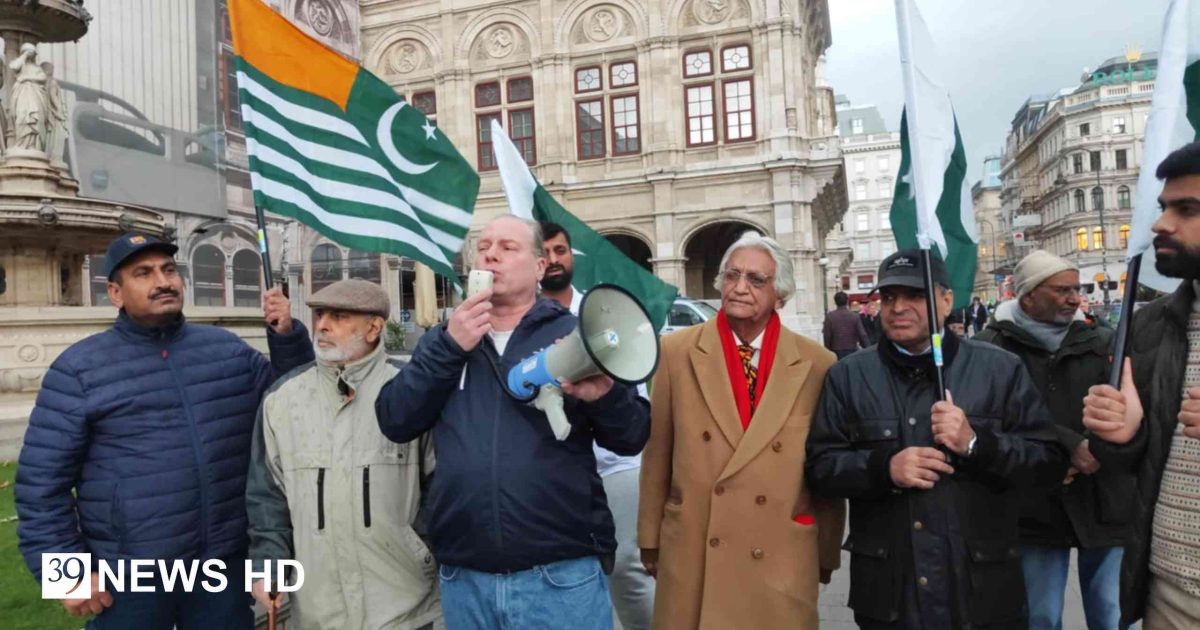 بھارتی سفارت خانہ ویانا کے سامنے 27 اکتوبر یوم سیاہ کے موقع پر احتجاجی مظاہرہ